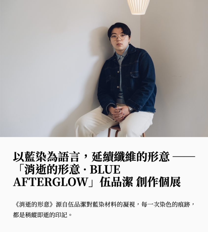 《消逝的形意》源自伍品潔對藍染材料的凝視。