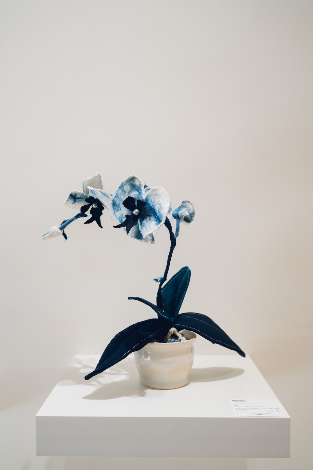 布料、⾺藍、化纖棉、珠⼦、紅銅、陶盆、複合媒材