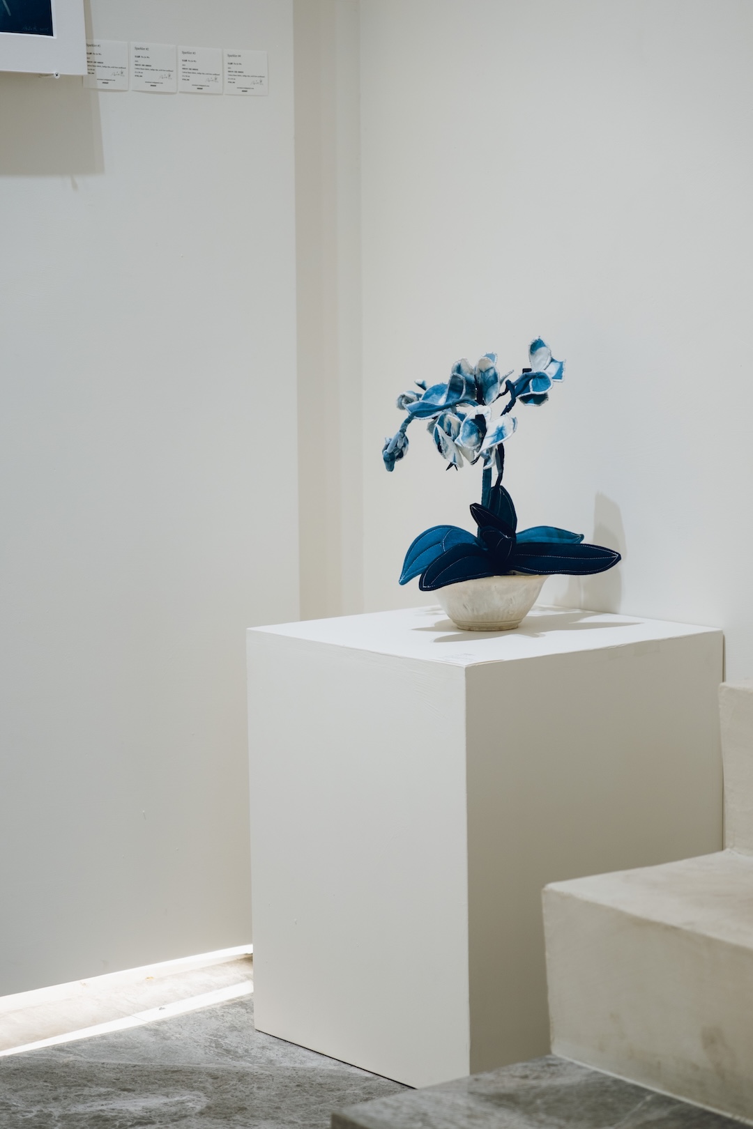 布料、⾺藍、化纖棉、珠⼦、紅銅、陶盆、複合媒材